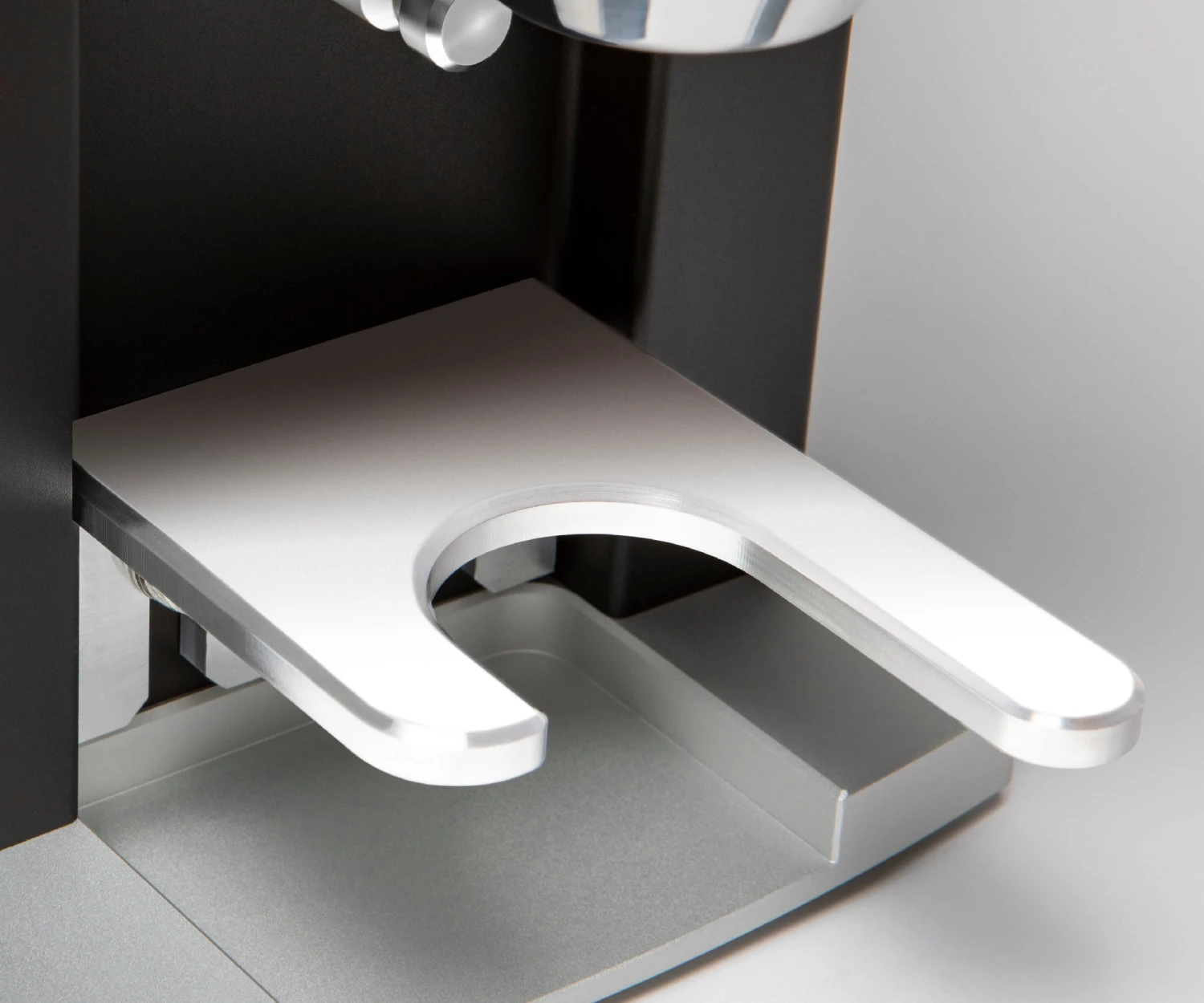 A small touchscreen display keeps everything neat and simple with the option to choose between a single dose, double dose, triple dose, or manual dosing. Visually, the display has a clean design and all UI elements are arranged for easy reading. For hands-free grinding, you can just leave the portafilter in the holder, press your desired amount, and watch the Faustino dispense fluffy grounds from the chute. You can easily adjust your grind settings for a single, double, or triple dose down to 1/10 of a second. Plus, the continuous grind button allows you to manually grind when you’re trying to find the right timing while dialing in or if you need to top off your grounds.