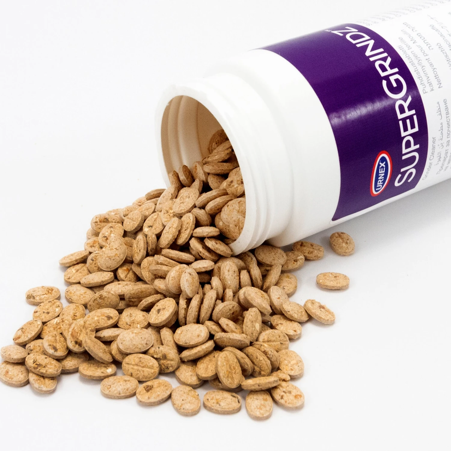 Urnex SuperGrindz are the world’s first safe and effective cleaning tablets for super-automatic espresso machine grinders. SuperGrindz tablets are food safe and repel water, meaning they can clean your super-automatic’s grinder without causing damage. These food safe tablets remove stale coffee and rancid oils that build up on your machine’s burrs over time, negatively impacting the flavor of your espresso. Regular use of SuperGrindz tablets will help to keep your espresso tasting its best.